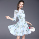 欧美外贸wish爆款女装2017新款淑女气质七分袖复古收腰印花连衣裙