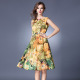 欧洲站外贸女装2017夏季无袖背心雪纺时尚印花修身中长款连衣裙