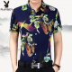 花花公子夏季碎花衬衫男短袖修身潮流男装沙滩半袖印花衬衣青年薄
