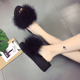 韩版新款时尚毛毛厚底拖鞋女夏季平底坡跟一字拖松糕外穿百搭女鞋