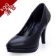 春款真皮女鞋防水台黑色超高跟单鞋全牛皮细高跟浅口小尖头厚底单