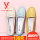 意尔康女鞋 春季新款真皮通勤浅口蝴蝶结平底套脚舒适女豆豆鞋
