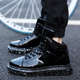2017夏季男鞋高帮板鞋男韩版潮流休闲鞋学生亮面潮鞋透气皮靴子