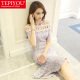 一字露肩蕾丝连衣裙女2017新款裙子夏季短袖荷叶边名媛性感中长裙