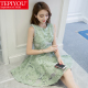 欧根纱网纱连衣裙仙女2017新款韩版修身气质短裙绿色无袖裙子女夏