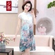 夕慕中老年女装夏装花色短袖 中长裙40-50岁妈妈装雪纺衫连衣裙