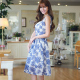 夏棉麻蓬蓬短裙瘦韩版青花瓷百褶连衣裙女碎花吊带裙子无袖背心裙