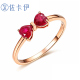 佐卡伊 玫瑰18k金钻戒心相连心形钻石戒指女戒送女友珠宝首饰