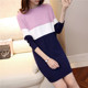 七婵2015秋装新款新品女装韩版撞色毛衣外套显瘦宽松打底针织衫
