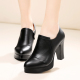 2017春季韩版真皮高跟鞋深口尖头女单鞋粗跟防水台工作鞋正装皮鞋