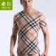 BISUAL必行 格子条纹冰丝无痕紧身夏短袖汗衫一片式超薄T恤男圆领