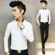 2016春秋季男士长袖衬衫青年商务韩版修身个性花领印花免烫衬衣潮