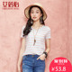 艾蓓怡女装春装2017新款潮镂空条纹印花上衣圆领短袖t恤女夏修身