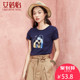 艾蓓怡女装春装2017新款潮时尚小衫圆领文艺印花修身短袖t恤女