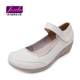 卓诗蓝新款白色女坡跟女牛筋底里外真皮护士单鞋春秋鞋小白鞋 805