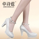 卓诗蓝新款厚底高跟鞋子粗跟真皮女鞋防水台一字扣带小码高跟单鞋