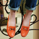 2016新款秋鞋粗跟单鞋真皮高跟鞋女布洛克英伦风圆头深口系带皮鞋