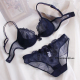 任意2套包邮!梦幻深蓝色透明蕾丝侧收超薄杯文胸+三角裤套装