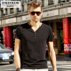 英爵伦 2017夏季新品男士修身潮牌V领 短袖T恤 亨利领纯色半截袖