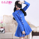 2016冬季新品女装韩版 宝蓝色花瓣修身气质中长款毛呢外套大衣
