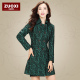 2017春季新款韩版蕾丝风衣女中长款修身外套大码复古绿色外套F604