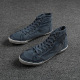 复古休闲铆钉男鞋韩国做旧水洗牛仔鞋高帮帆布鞋潮流男士牛仔布鞋