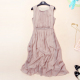 手工钉珠无袖气质淑女款宽松背心真丝连衣裙夏