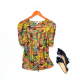意大利风情 经典碎花 抽绳显瘦真丝棉泡泡袖短袖T恤衬衫女装上衣