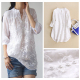 欧洲站高端女装春夏立领欧根纱棉麻刺绣中长款五分袖白色衬衫上衣
