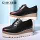 杰豪新款松糕鞋厚底欧美坡跟布洛克英伦风麻绳系带平底单鞋女鞋
