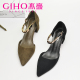 杰豪女鞋2017春夏粗跟凉鞋绒面一字扣尖头浅口单鞋韩版性感中跟鞋
