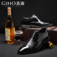 杰豪新款春秋男士商务正装皮鞋真皮系带英伦风男鞋布洛克雕花男鞋