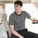 马克华菲短袖T恤男装2017夏装新品潮流条纹撞色修身纯棉圆领 7112