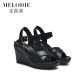 麦露迪2017新款欧美时尚真皮坡跟凉鞋女夏季露趾防水台超高跟女鞋