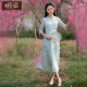 筱姿芊芊2017春季新款女装复古绣花连衣裙七分袖中长开叉裙子旗袍