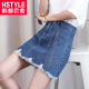 韩版韩都衣舍2016新款女装 夏季纯色A字裙半身裙短裙牛仔夏装破洞
