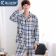 豪天世家春秋季男士睡衣 纯棉长袖长裤对襟翻领简约风家居服套装