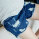 孕妇装韩国时尚2017夏季破洞孕妇短裤 牛仔乞丐款托腹裤夏装热裤