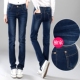 春季宽松直筒牛仔裤女深色大码宽腿长裤弹力显瘦休闲阔腿裤加长版