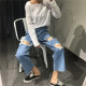 2017春季新款韩版时尚潮流宽松显瘦水洗高腰磨破洞直筒九分牛仔裤