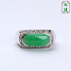 翠达 糯种18K满绿镶钻翡翠戒指 马鞍形戒面男戒 13416