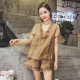 欧洲站时尚套装女夏装新款v领欧根纱拼接亮片高腰宽松短裤两件套