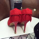 韩版甜美系后蝴蝶结绒面细跟7cm红色黑色尖头高跟鞋浅口套脚女鞋