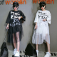 黑白印花哈伦裤短袖T恤套装欧洲站大码女装胖mm春夏两件套200斤潮