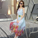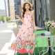 春夏新款波西米亚风沙滩雪纺印花气质连衣背心裙女(送腰带)