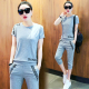 夏季时尚女装休闲短袖圆领T恤+百搭运动七分裤两件套
