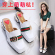 拖鞋女夏时尚韩版外穿平底英伦风粗跟方头半拖鞋中跟包头凉拖鞋女