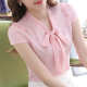 夏白衬衫女短袖职业正装修身工装蝴蝶结韩范荷叶边OL寸学生雪纺衫