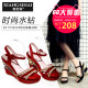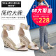 欧美新款手工真皮坡跟凉鞋女夏高跟 罗马时尚百搭一字扣高跟鞋