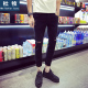 夏季黑色破洞牛仔裤男士韩版修身9分裤潮青少年休闲小脚九分裤子